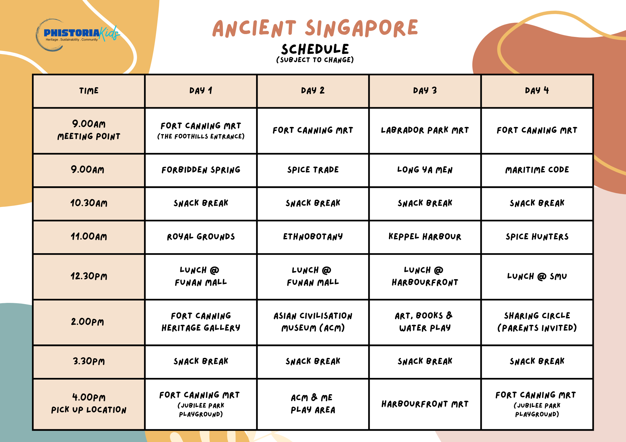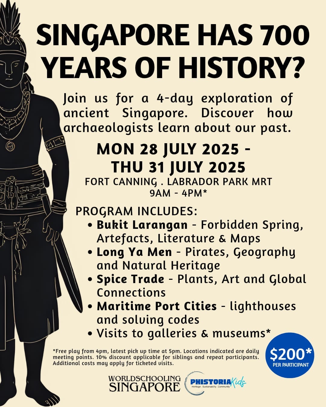 This is a place-based experiential learning program curated for the children to learn through guided observation, journaling, art. Our facilitators will share stories on the topics of archaeology, global connections and citizenry, geography, history and different forms of sense making and applying that to the topic of Singapore’s history since the 13th century. We will read books together and also explore exhibitions and galleries to gleam more information on the topics.